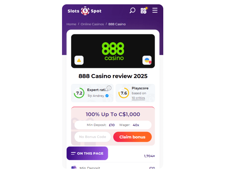888 Casino bonuses highlights and quick facts