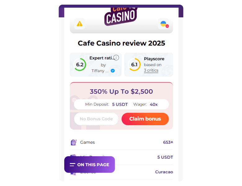 If you want a high bonus cap with crypto and don’t mind the rollover, Cafe Casino delivers. The mix of a no deposit bonus and high match bonus rate makes it worth testing with small stakes first.