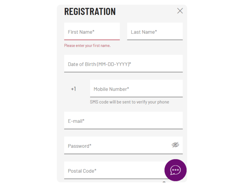 Create a new Cafe Casino account by filling in your email, username, password, and other requested details.