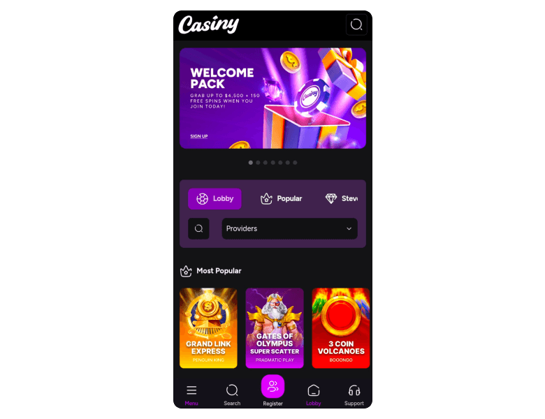 Unfortunately, there isn't a long lineup of promo offers for existing players at Casiny Casino. The loyalty program and referral bonus were the other two promotions available on the website. I had more success with the refer-a-friend promo, as all I had to do was invite friends to register and deposit at least A$30 in order to get A$50 free.
