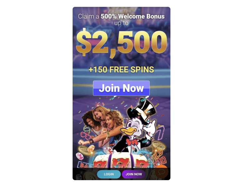 After clicking the offer, you’ll land on the official DuckyLuck Casino page. Tap the “Join Now” button prominently displayed to start the registration process.