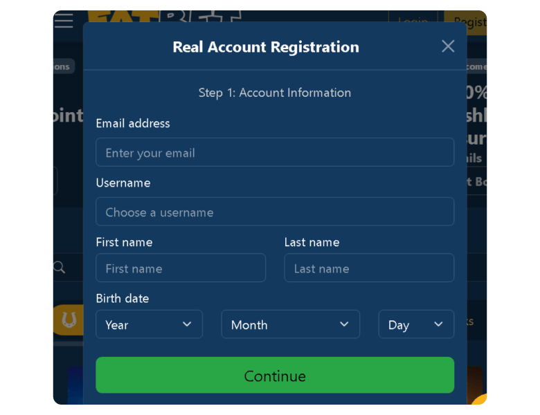 Claiming the main promotion at Fatbet is very easy. You have to create an account first. Here’s how you can do that:
