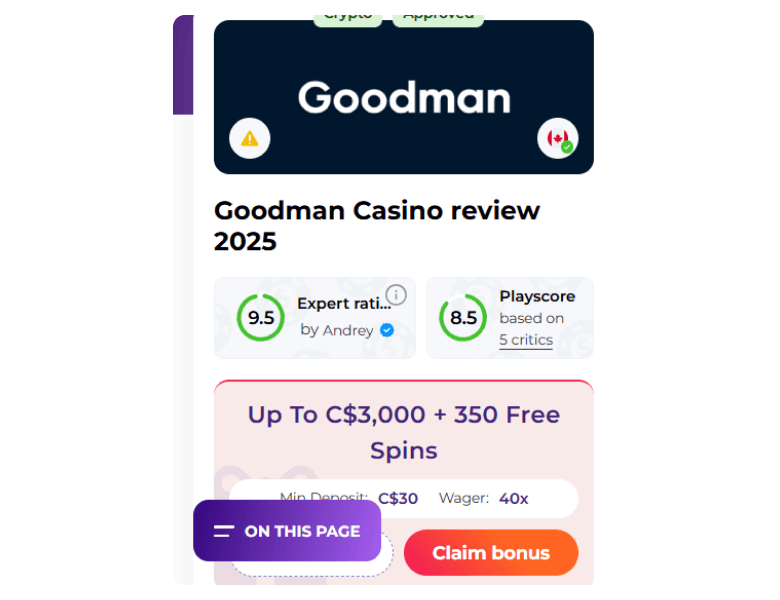 Goodman Casino bonuses highlights and quick facts