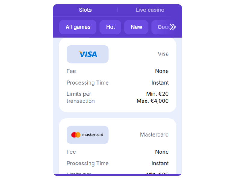 Deposit methods to receive bonuses at Goodman Casino