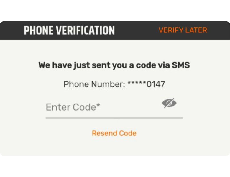 Enter the SMS code on the phone verification screen to lock in your number, or skip and verify later.