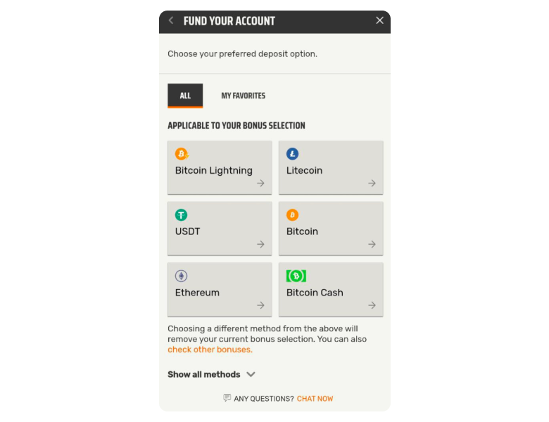 Deposit methods to receive bonuses at Ignition Casino