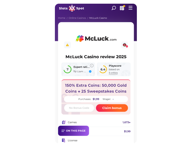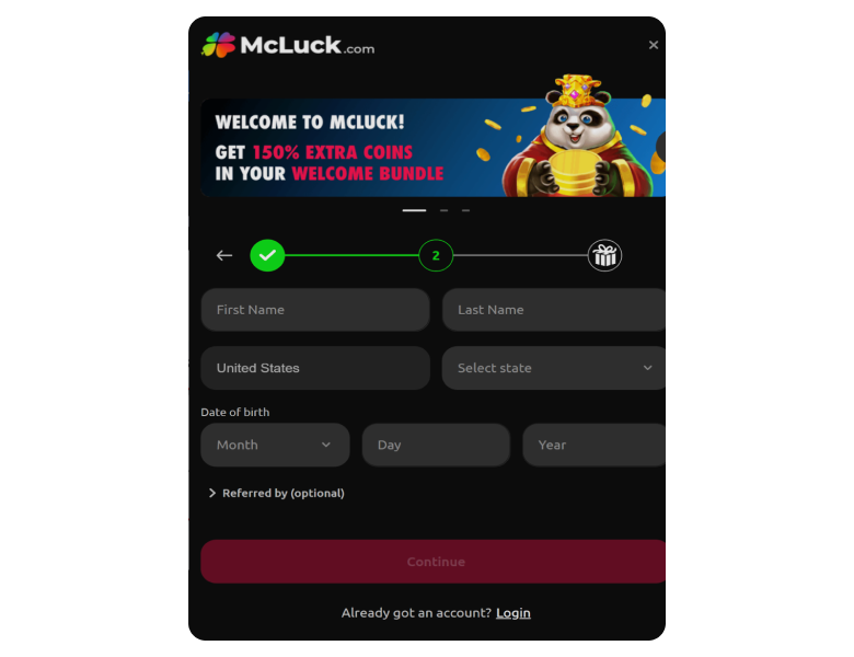 As a new player, I found it very easy to claim the welcome bonus at McLuck because there was no other step to complete after registration. No bonus codes are needed for any of the offers, and that’s what makes sweepstakes sites more convenient bonus-wise. The entire 7,500 Gold Coins + 2,5 Sweepstakes Coins welcome offer landed in my account within seconds and I started playing games. A friend also joined using my referral code, which resulted in a 200,000 Gold Coins + 100 Sweepstakes Coins top-up once he started playing.