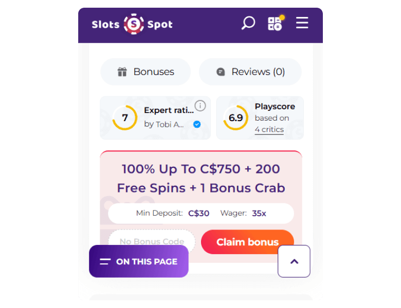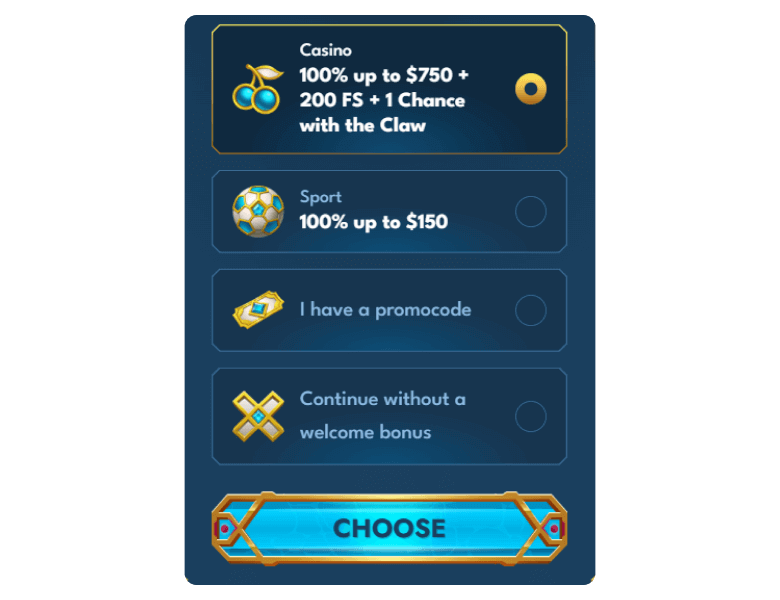 Generous welcome bonus of up to C$750 and 200 FS