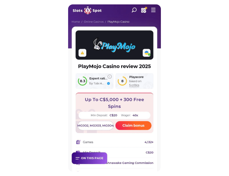 PlayMojo Casino bonuses highlights and quick facts