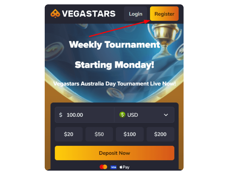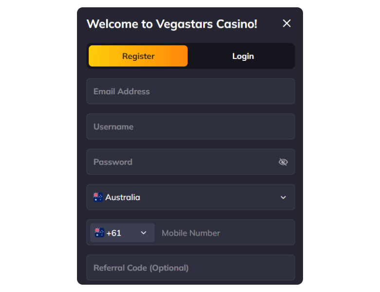 Opening an account at Vegastars is the first step to claiming the initial bonus. Here are the steps you need to follow to trigger it.