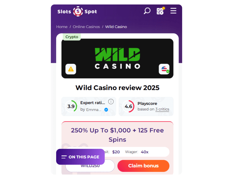 I tested Wild Casino starting with the crypto welcome deal of 300% up to $3,000. I deposited $100 in Bitcoin and received $300 instantly without needing to use a bonus code. The 40x wager was on the high side, but the terms were clearly displayed at checkout.
