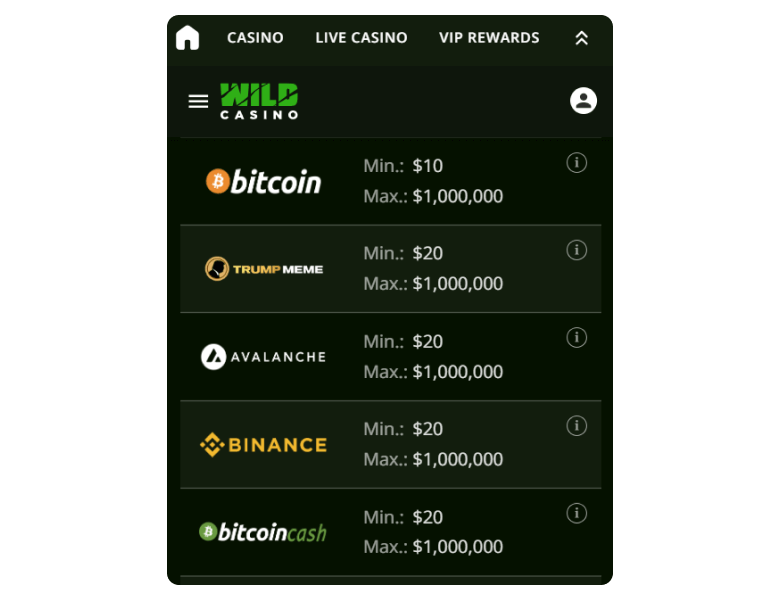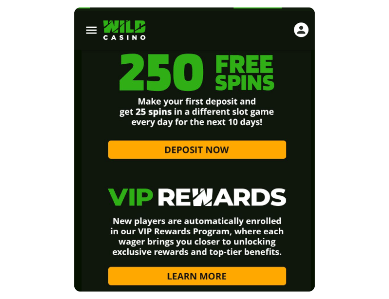 Wild Casino offers a wide spread of bonuses tailored for both new and existing players. The welcome bonus stands out with two separate tracks: one for crypto and one for standard deposits. Players can also take advantage of weekly reloads, no deposit free chips, and referral-based bonus codes. While there’s no formal VIP system, the rotating promotions and clear wagering terms make the offers competitive for frequent players and crypto-first users alike.