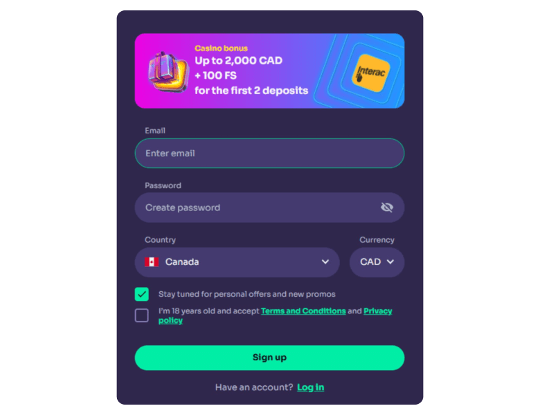 I deposited CA$30 using Interac and instantly got the 100% match with 100 spins without using a bonus code. The spins were usable on Lady Wolf Moon and Wild Cash x9990, both of which ran without any loading delays. I liked that the bonus arrived without having to contact support or dig through a promo tab.