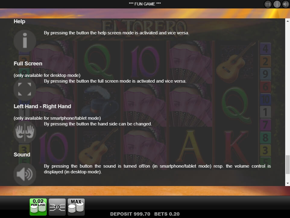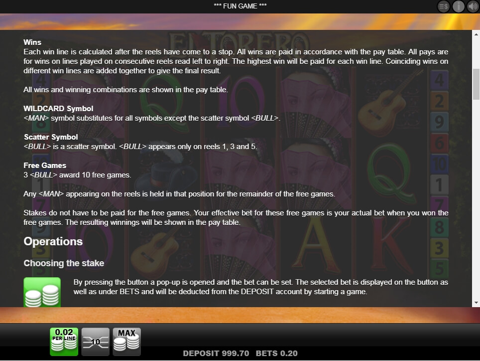 Je mehr Münzen Sie setzen, desto größere Preise können Sie im Spielautomaten El Torero gewinnen.