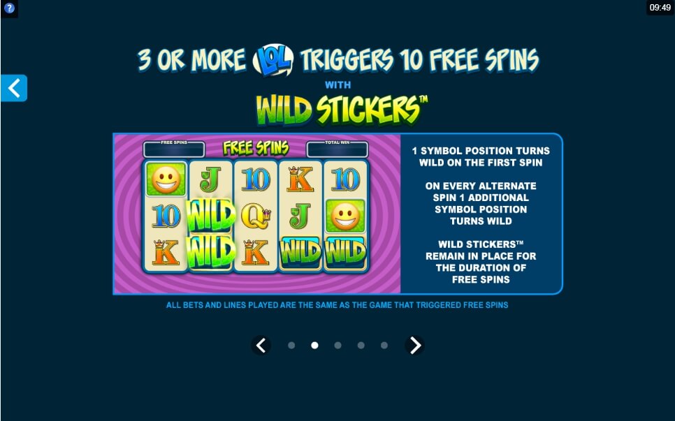 Das Freischalten von Free Spins kann nur dann real sein, wenn Sie mindestens 3 blaue Lol s auf den aktivierten Rollen auslösen. Warum? Weil Lol der magische Scatter ist. Wenn Sie diese Regel kompilieren, erhalten Sie 10 Freispiele.