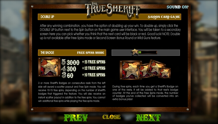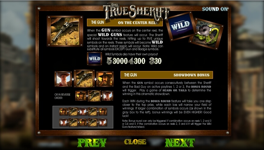 Der True Sheriff SPIELAUTOMAT macht Spaß sowohl für Anfänger als auch für erfahrene Spieler. Die Animation und Musik sind erstklassig und das Gameplay ist sehr einfach und angenehm.
