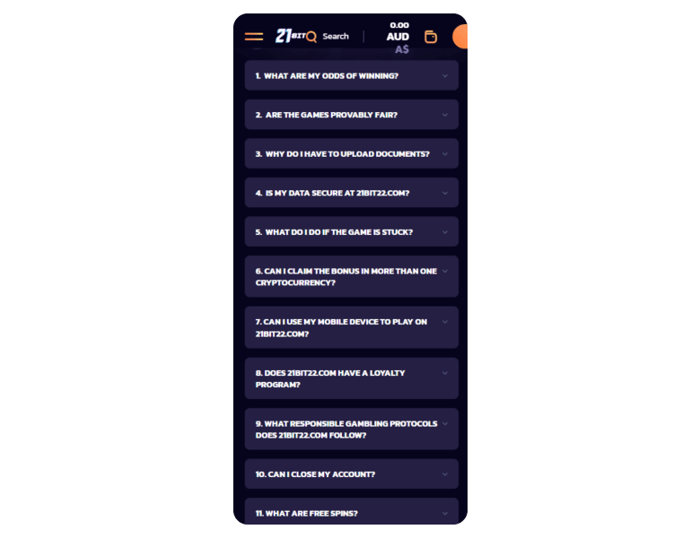 The minimum deposit required to play at 21Bit Casino is $10, which makes the platform accessible for players with smaller budgets.