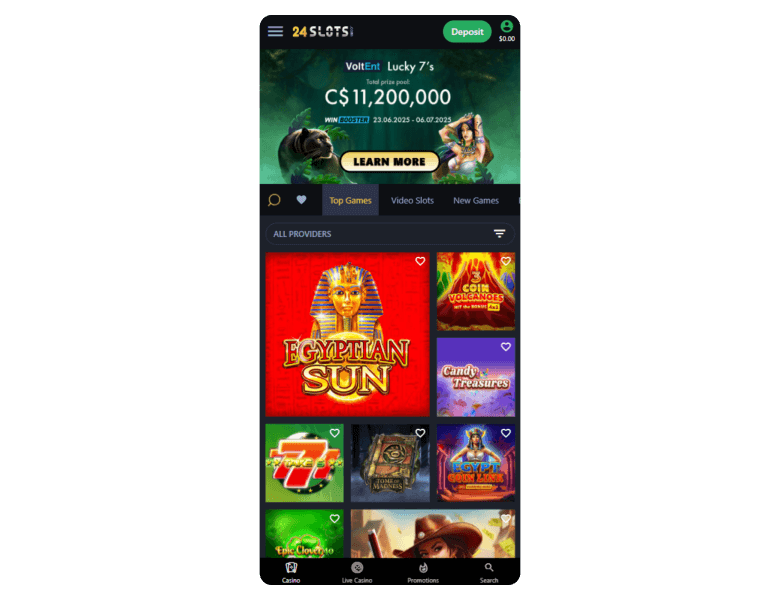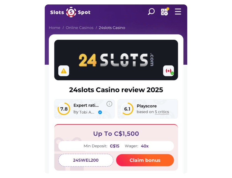 I spent fourteen days inside 24slots, spinning, topping up, and cashing out. I started with a C$30 Interac deposit and the welcome pack dropped instantly. The lobby loaded in half a second on my Pixel 8, and every slot I tried paid close to the listed 96% RTP. Crypto withdrawals hit my wallet in under eight hours twice; Interac took closer to twenty-four.