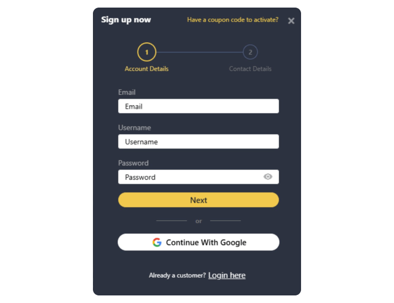 | Bonus type | Best offer | Min. deposit | Wagering requirement | Bonus code |