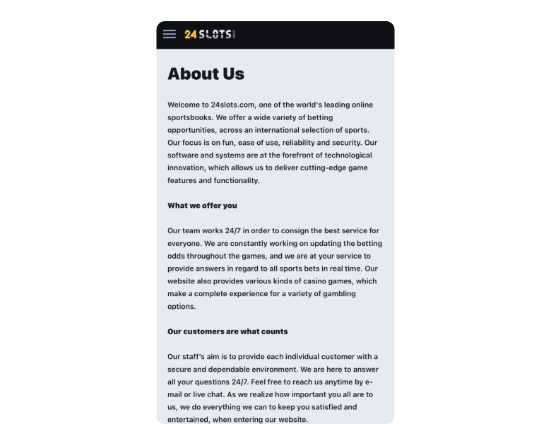 Mobile 24slots Casino website exceeded my expectations. Everything from registration to gameplay was smooth and lag-free.
