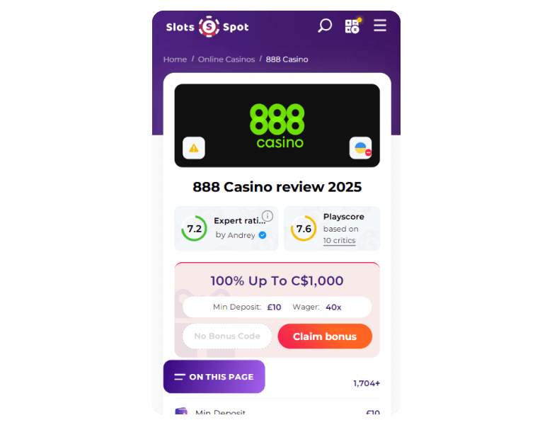888 is a triple-licenced casino with over 3,000 games. The payment package supports inexperienced and experienced players from Europe, Canada, and the USA. Overall, it’s a good place to find game variety and good starting bonuses, but not as good for speedy customer support.