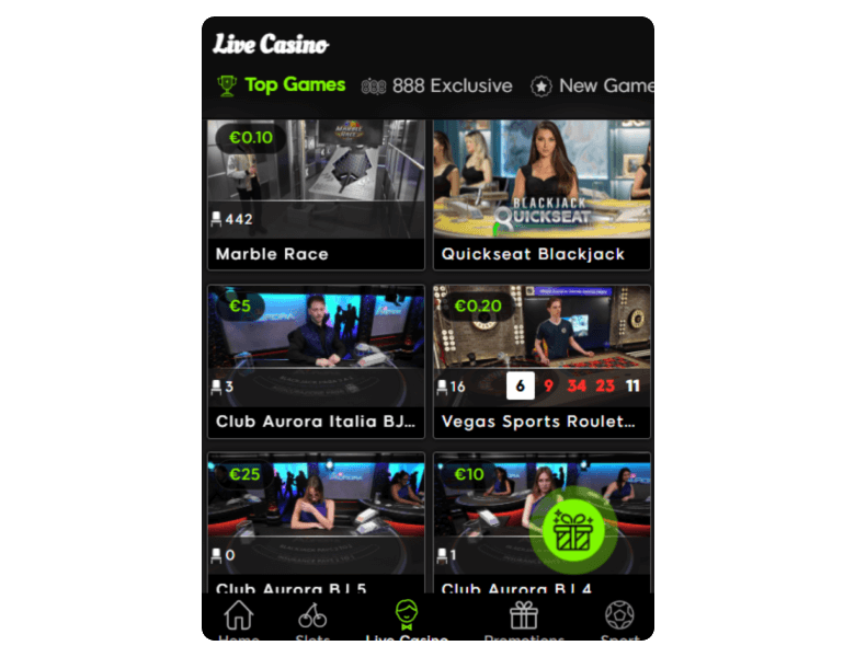 888 hosts one of the largest sections of live casino games in Canada and the USA — over 331 high-quality titles.