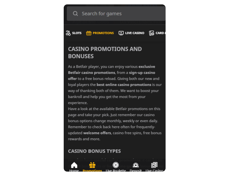 My opinion on Betfair Casino usability