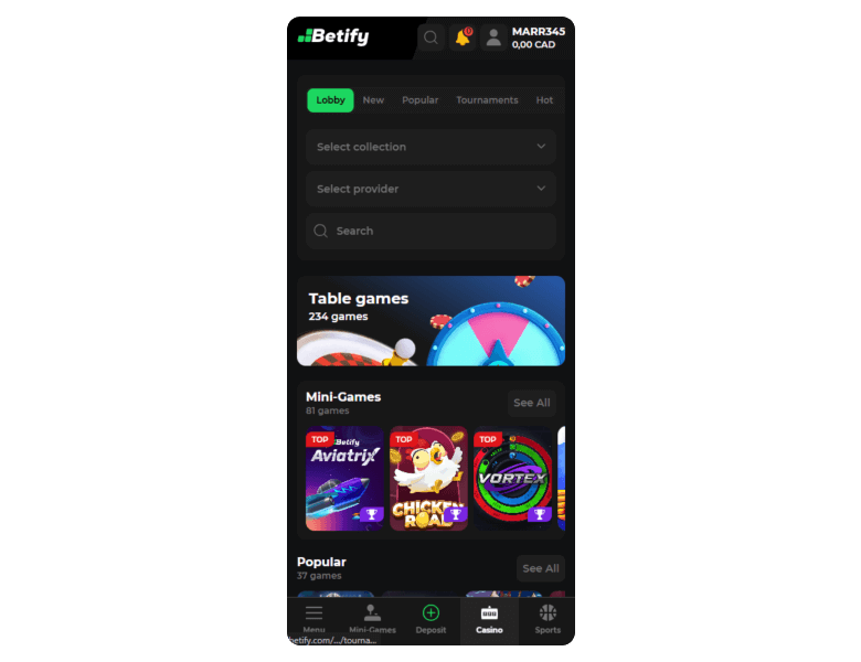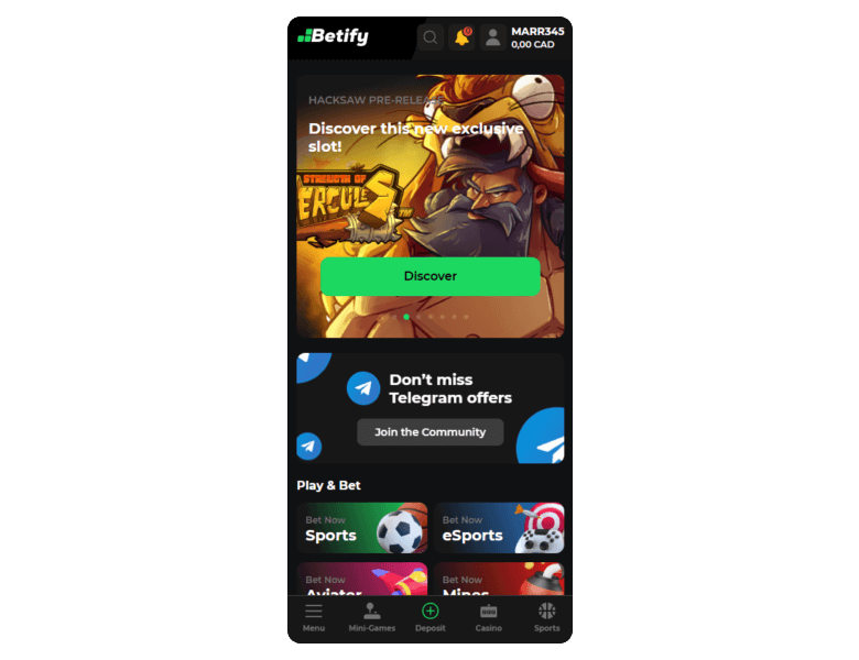 Betify Casino attracts players with its powerful catalog of 5,900+ titles and a low minimum deposit of just C$15. Thanks to supporting crypto options, the platform allows almost immediate withdrawals within an hour.