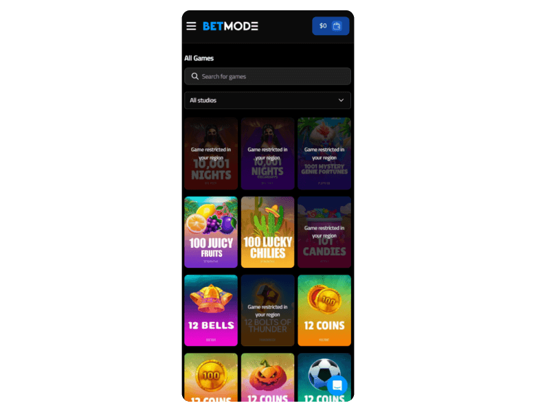 Betmode.io is a US-facing online casino even though it welcomes players from everywhere else except China and North Korea. Being recently launched in 2024, it's still fresh off the shelf, but its collection of slots and live dealer table games suffices for even veteran players.
