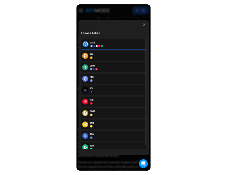 Payments at Betmode are swift, with an average deposit completion time of 2 minutes max. Withdrawals are processed quickly within a few hours, too, depending on the payment method. It is important to note that this platform only supports cryptocurrency transactions, and the following are the available options for deposits and withdrawals: