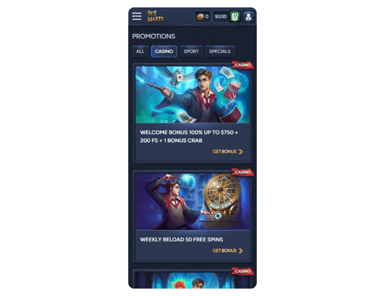 I noticed Betwarts isn’t pushing too many offers at once, but the few available deals are fair. The welcome offer, for instance, is a combo of free spins, a bonus crab, and a 100% deposit bonus.