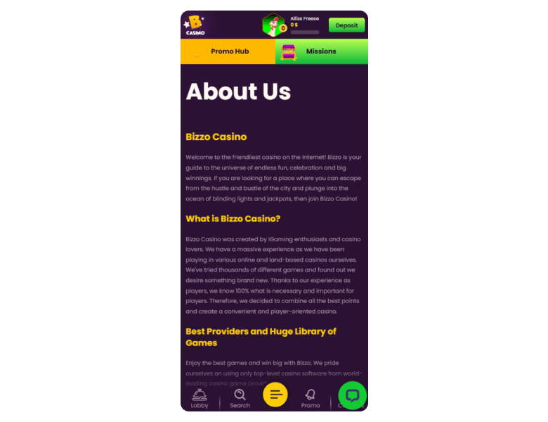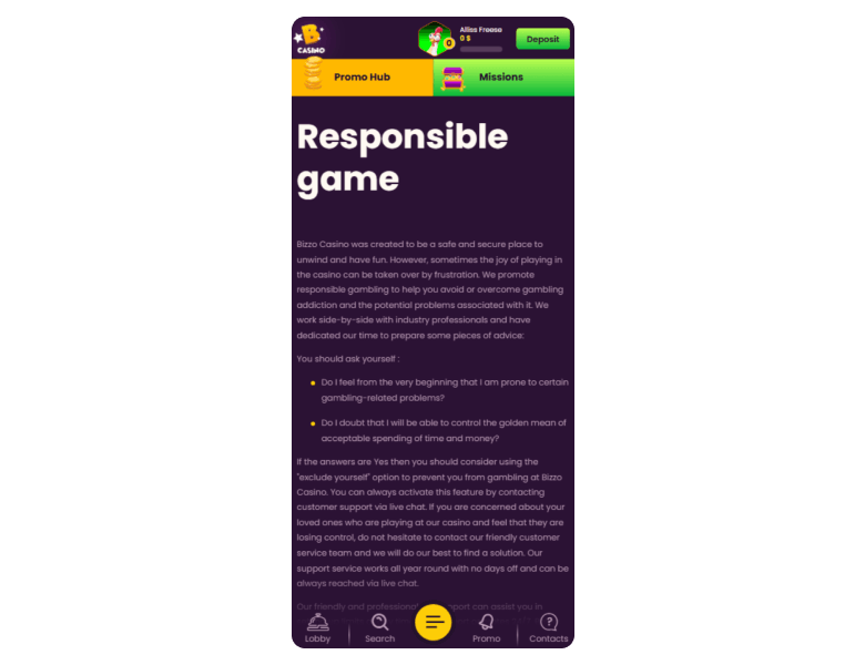 Overall, Bizzo Casino is a nice platform with an intuitive UI and an extensive game catalog. Nonetheless, I found it challenging to clarify the issue with my payment via Jetonbank using the live chat. It would be nice if it had phone support as well. I occasionally need to quickly clarify payment-related issues and would welcome an opportunity to discuss them with a manager by phone.