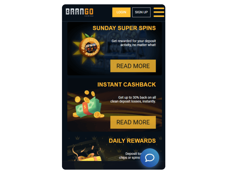 In the absence of a Brango Casino mobile app, users can trust the mobile web version to provide the same great experience on all screen sizes.