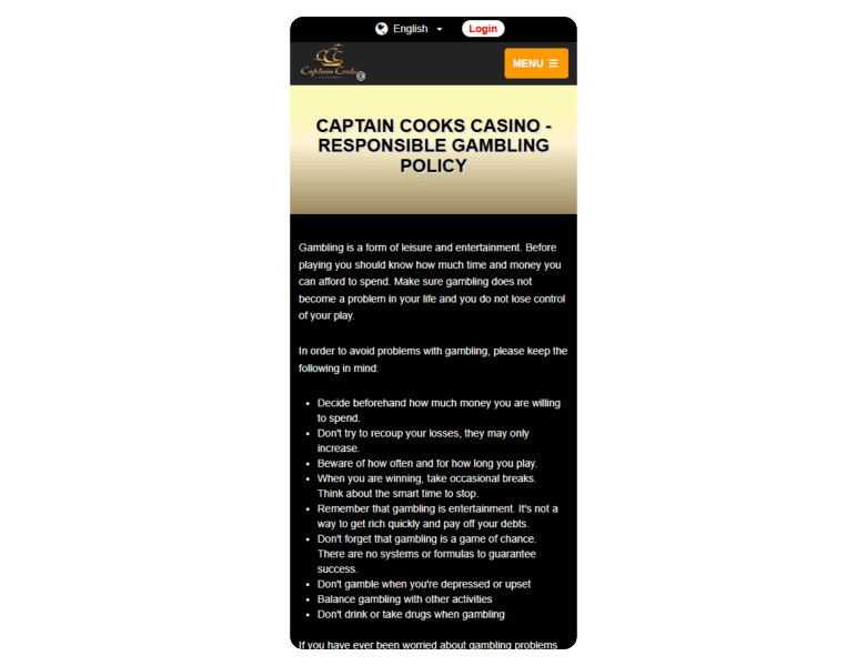 Captain Cooks Casino is licensed by the Kahnawake Gaming Commission and certified by eCOGRA. The platform also offers core responsible gaming tools like financial limits, time-outs, and self-exclusion.