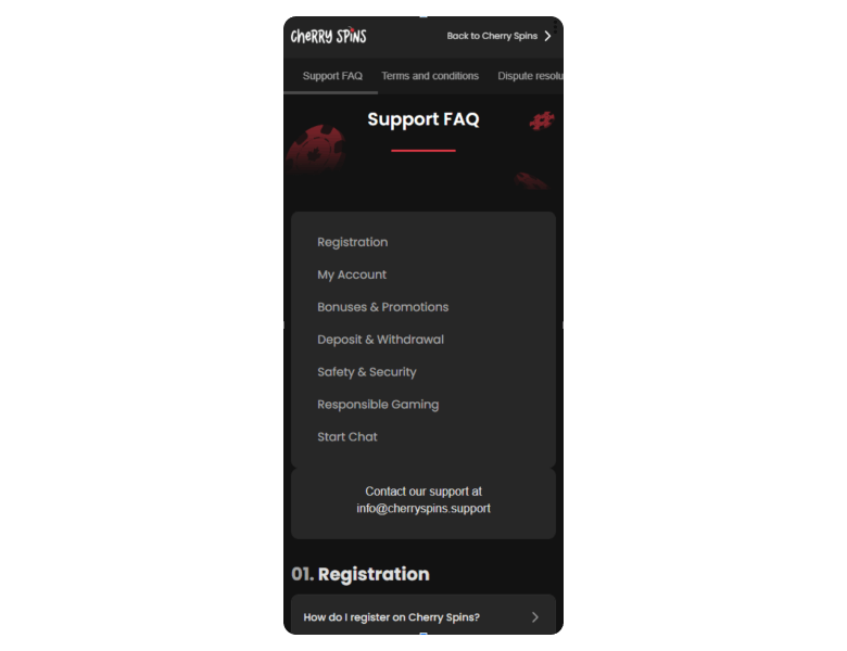 Screenshot of the main sections of the casino website: