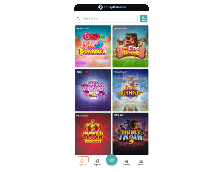 I explored the Conquestador Casino after effortless registration. The homepage dashboard has clear game labels with 4,645+ options. The friendly search filters helped me navigate the choices easily, including narrowing the search range to 22+ game providers, some of which include Evolution Gaming, Betixon, and Quickspin.