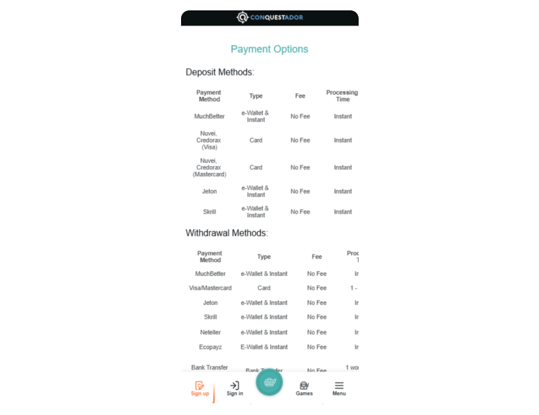 Primarily, Conquestador Casino ticks every mark for avid gamers looking for variety and effortless payments, especially their crypto-friendly online cashier system.