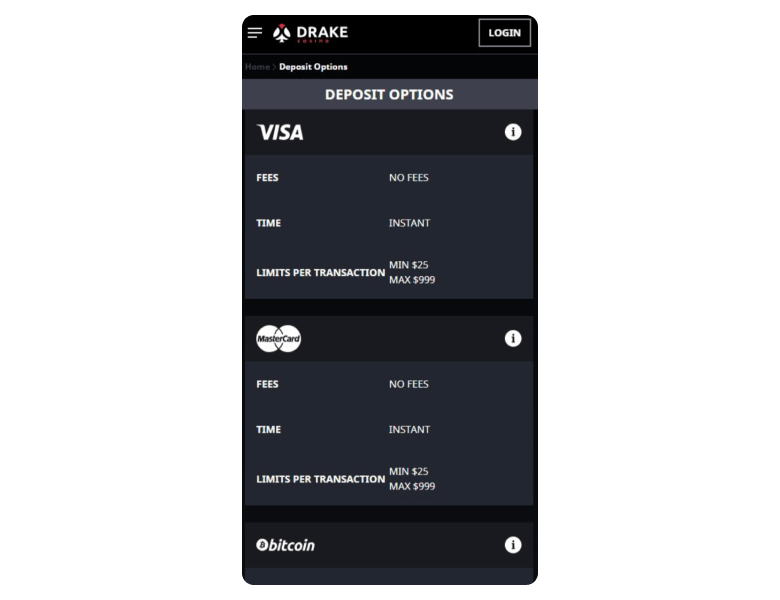 Drake Casino does not have a mobile casino app. Instead, you can play in the browser. The mobile version is actually quite similar to the desktop one, since it mirrors the same features, but when I was using it on my iPhone, I noticed slight delays when loading pages. Computer play definitely wins for me.