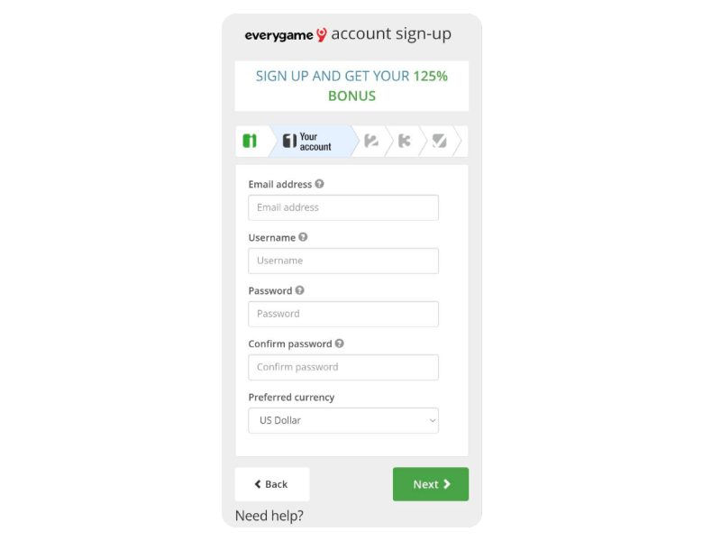 Everygame is big on welcome bonuses, offering rewards for the first five deposits. The package extends into a VIP program, a wheel of fortune, and a bonus for a new game.