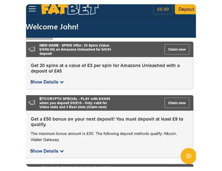 At Fatbet, you will be in for great rewards, including an exclusive welcome bonus of 400% up to £4,000 only for SlotsSpot users. Also, you can claim a reload offer, regular free spins on new and established games, crypto promotion, and even cashback.