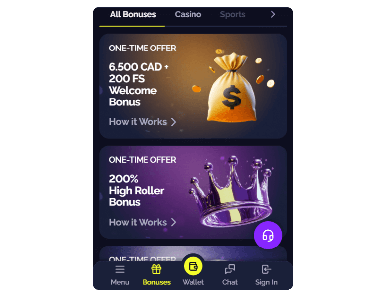 | Crypto Bonus | 150% up to C$5,440 | C$41 | 45x | Not Required |
