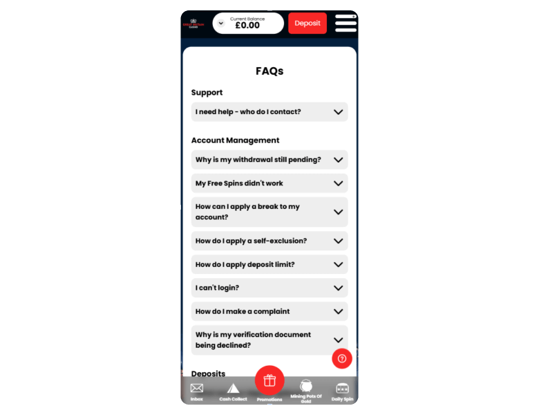 | Deposit methods | Deposit limits | Deposit time |