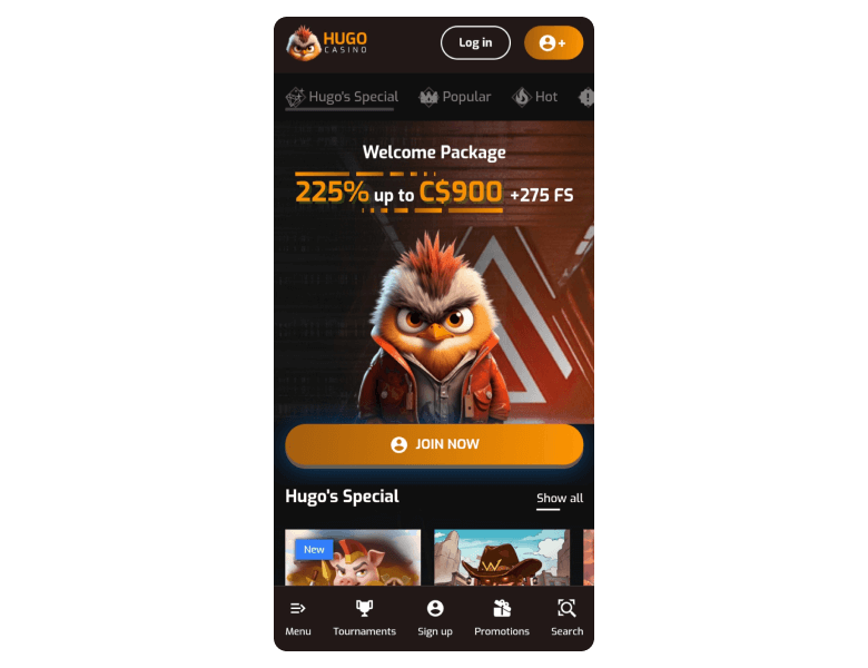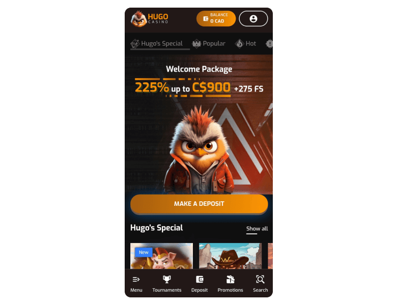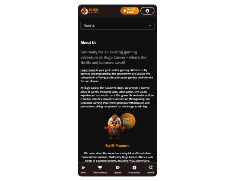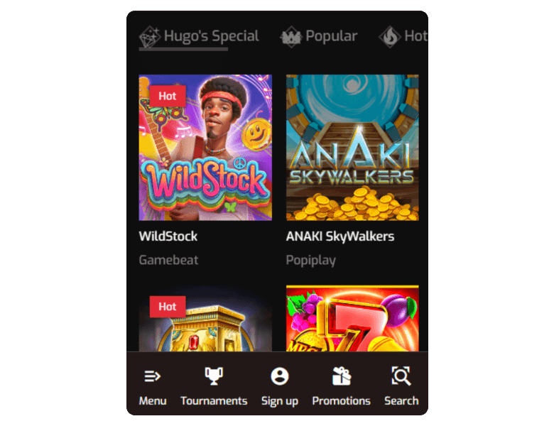 Although Hugo Casino doesn't have a downloadable casino app, you can install a web app shortcut on your smartphone. The site's overall user experience on mobile is smooth, responsive, and convenient.