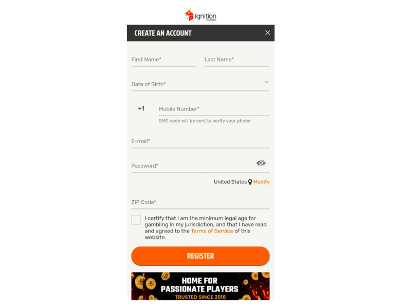 Registering at Ignition Casino and receiving your first bonus takes just a few minutes: