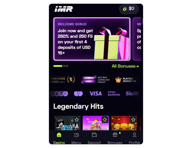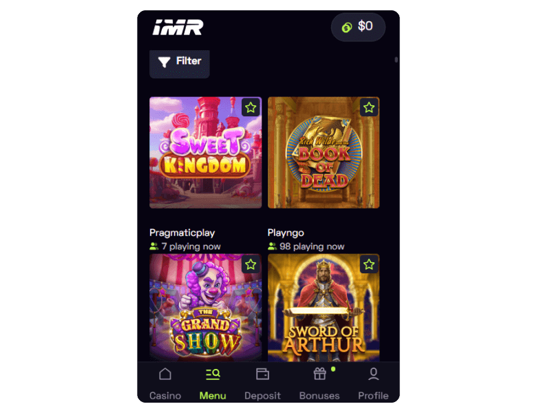 Immerion partners with over 100 software providers to give you access to both trending studios and classic engines. Games load fast and run smoothly on both desktop and mobile.