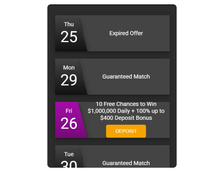 Daily deposit matches
