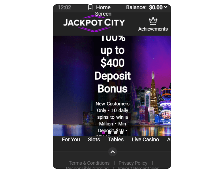 At Jackpot City, you have a choice of downloading the mobile casino app or playing directly from Safari, Opera, or Chrome browsers on Android and iOS devices. The apps load quickly and adapt the content perfectly to smaller screens.
