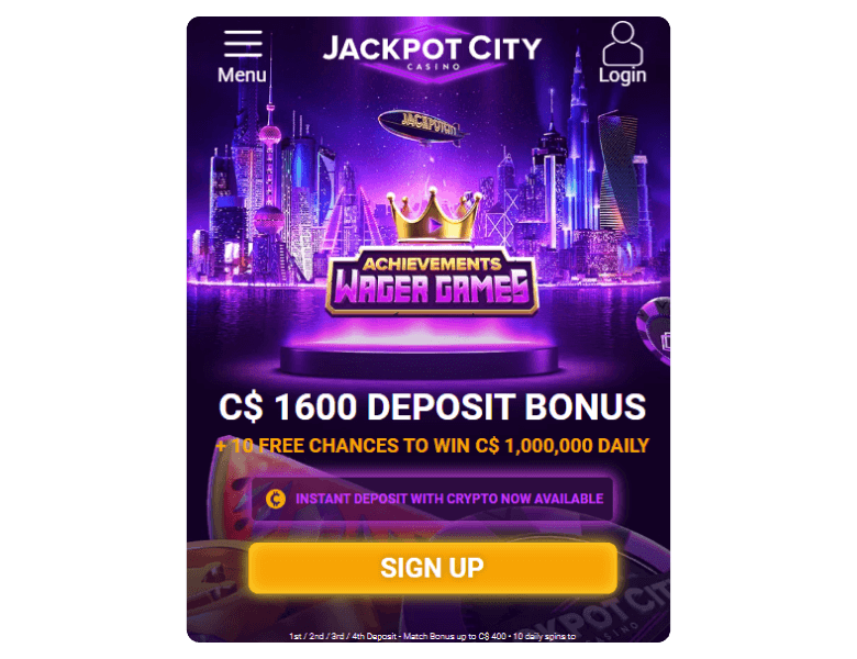 Jackpot City is a secure casino with slots, table games, and real-dealer titles for players from Canada, the UK, New Zealand, and other countries. The platform stands out with up to C$300,000 deposit and withdrawals, including crypto, a generous VIP program, and progressive jackpots.
