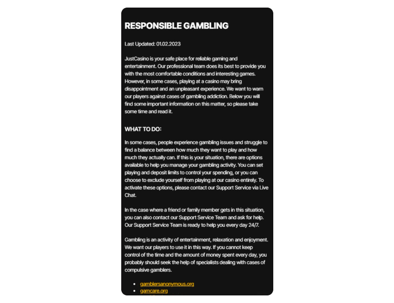 However, if for any reason the chat feature doesn’t suit your preferences, JustCasino can still be contacted via email. By composing a message to support@justcasino.com, you can anticipate a response from the casino’s team within a few hours, ensuring your concerns are addressed.