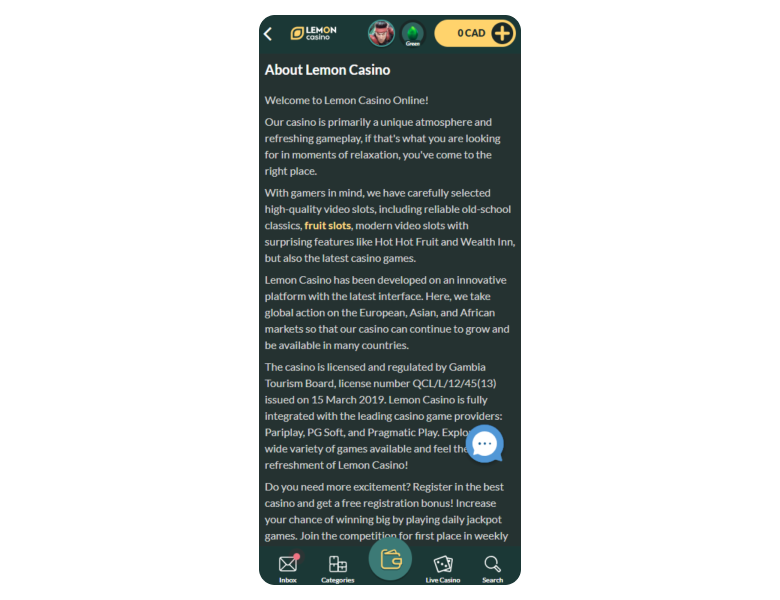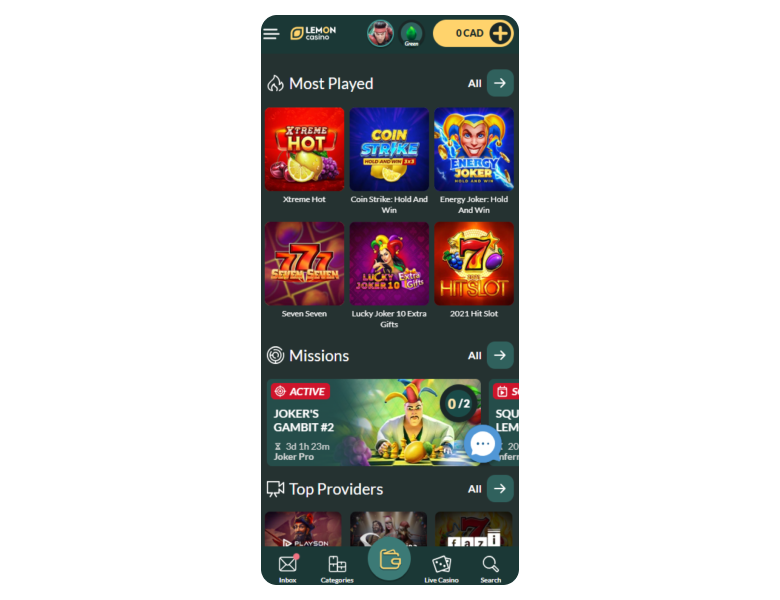 Lemon provides a fun gambling pastime with a low minimum deposit of just C$10 and a great catalog of 3,400+ games, including an extensive live section with 80+ titles from popular providers like Pragmatic Play. The site also supports 15 payment methods, including cryptocurrencies, so deposits and withdrawals are fast and convenient there.